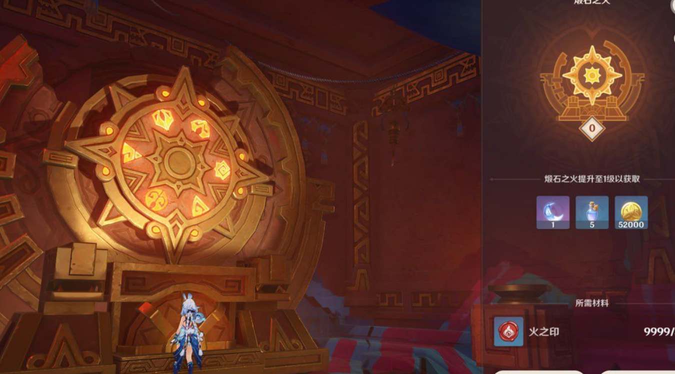 5.0版本更新后玩家在纳塔各处冒险时获得的「火之印」,供奉在帕克斯神庙的煅石之轮前进行升级可以领取奖励。
