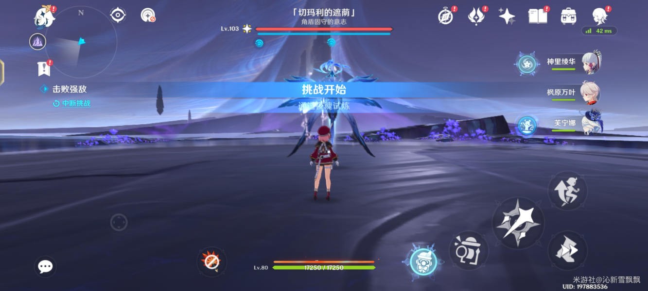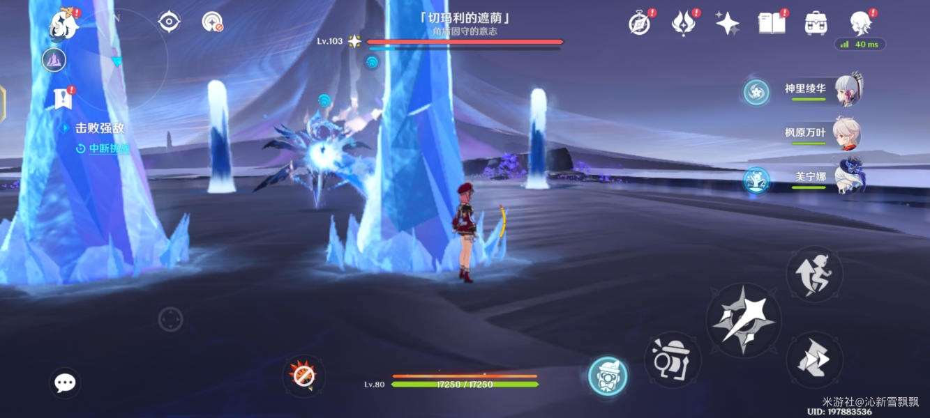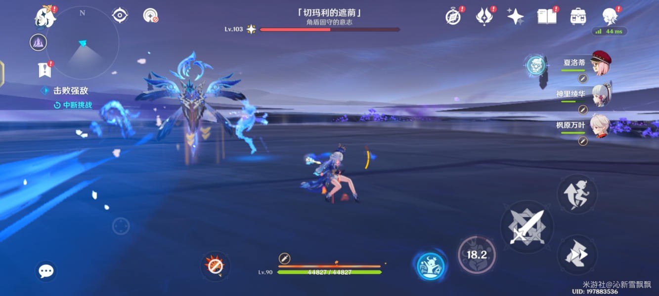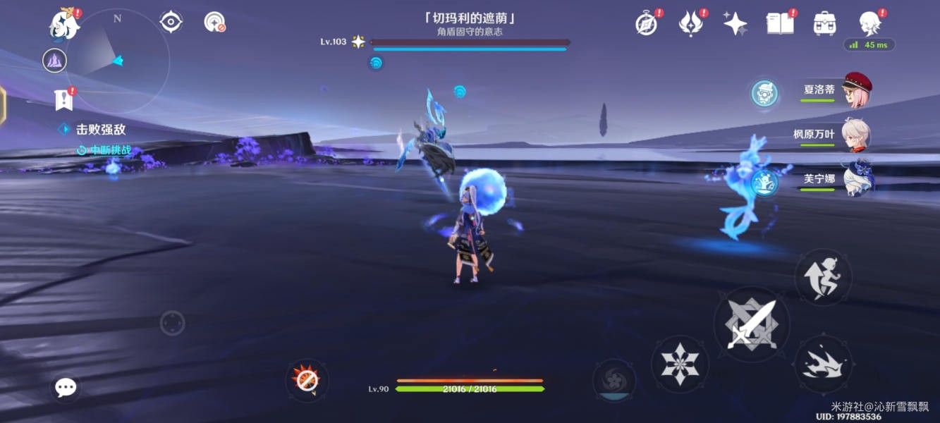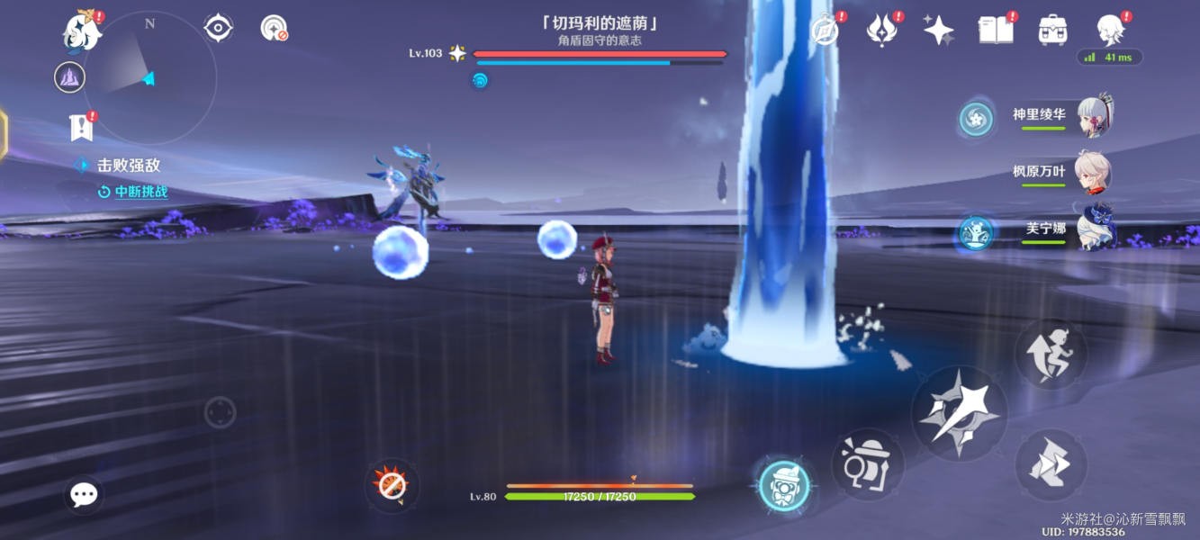 注意:该图腾具有多种必杀技能,开局赋予护盾,元素反应破盾效率慢,技能伤害高,需要将其间歇释放的水球冻住,重击打回破盾