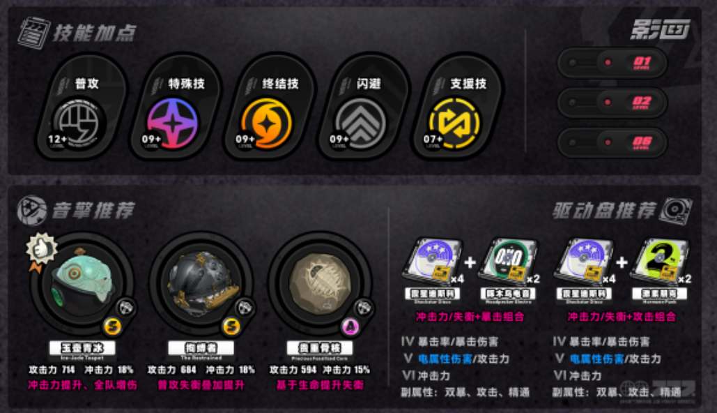 优先升级核心技和普攻,其次特殊技和闪避,最后在点终结技、支援技。
