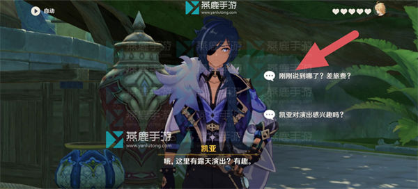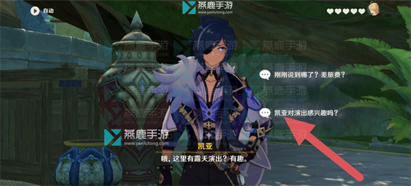 1、对话选择【凯亚对演出感兴趣吗?】。