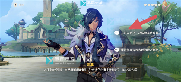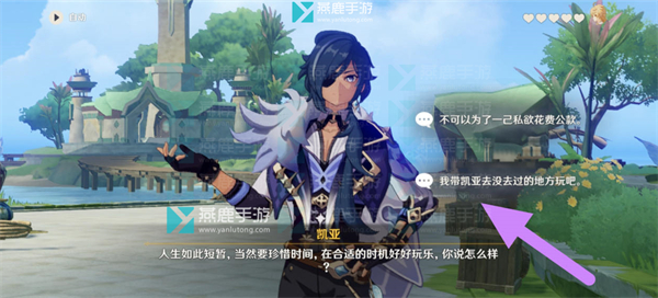 13、对话选择【我带凯亚去没去过的地方玩吧。】。