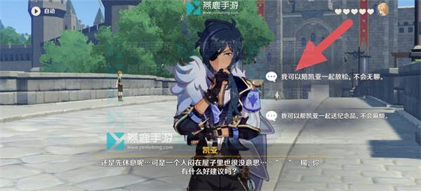5、对话选择【我可以陪凯亚一起放松,不会无聊。】。