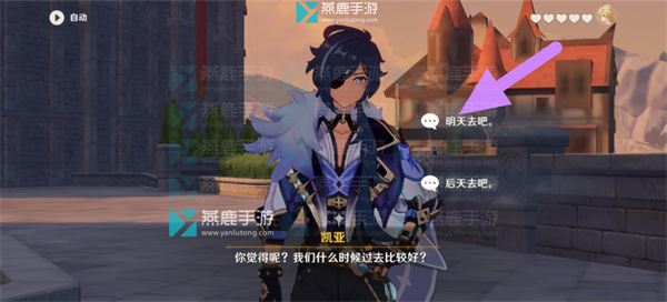 9、对话选择【明天去吧。】。