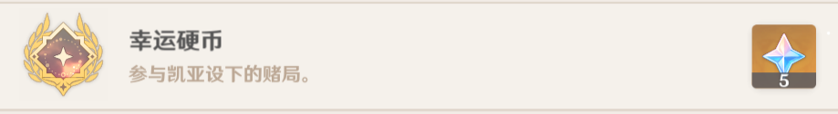 14、跟着凯亚参与赌局并获胜,完成剧情解锁成就[幸运硬币]。