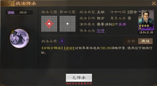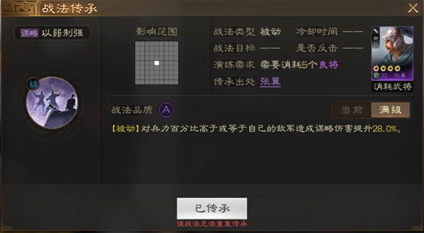 战法简介:为数不多的提升伤害战法范围用处很广 搭配趁虚而入 爆发很强 单体伤害能上升很高的层次。