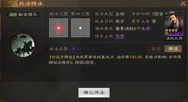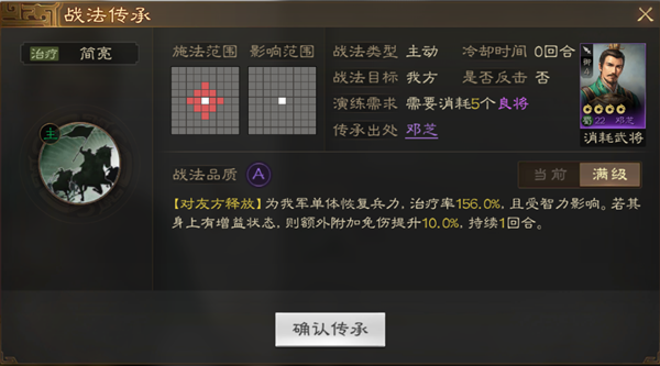 战法简介:为数不多的又能奶又能增加移动力相当可以。