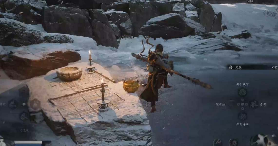 4、在不空面前使用白狐毫变成白狐,然后会触发战斗。战斗的难度不算很大,要注意避开法球的持续伤害,躲避拳头的攻击。也可以使用聚形散气或重棍破防敌人打断它蓄力施法。在它血量很低的时候攻击欲望会增强,这时候再使用变形,可以保证有更高的容错率通关。