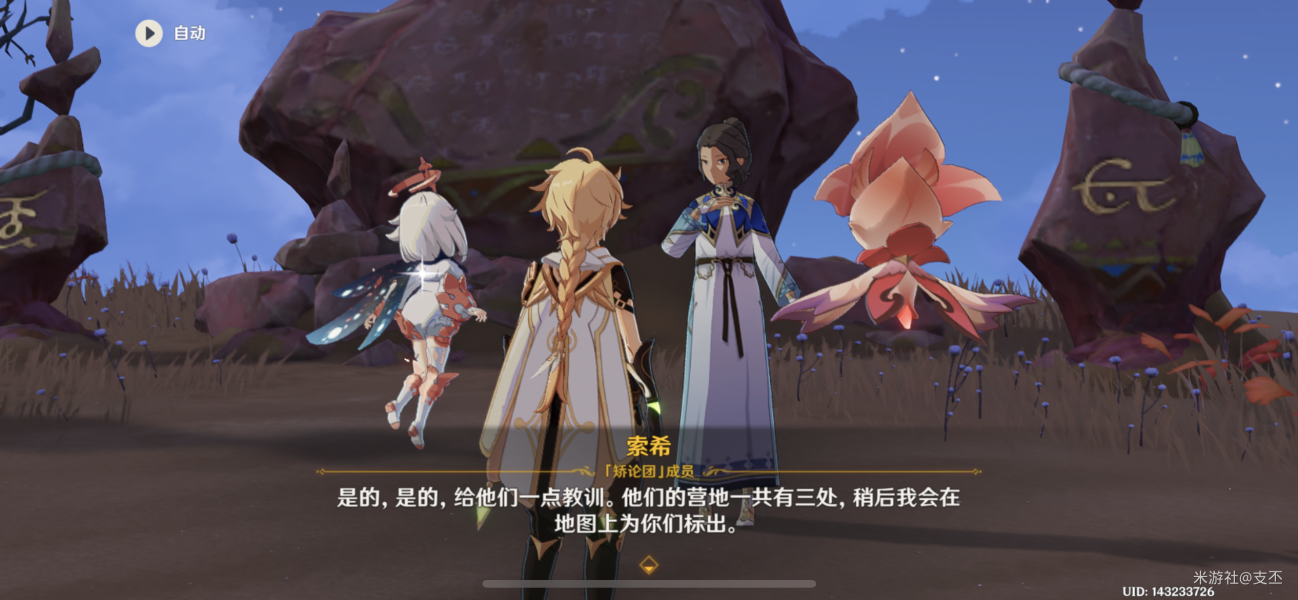2、接着再次对话,之后会出现愚人众,此时玩家需要将其击败;