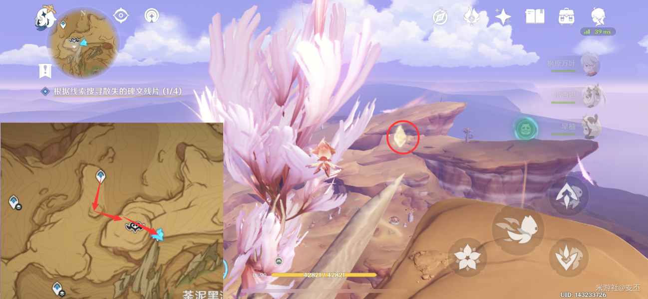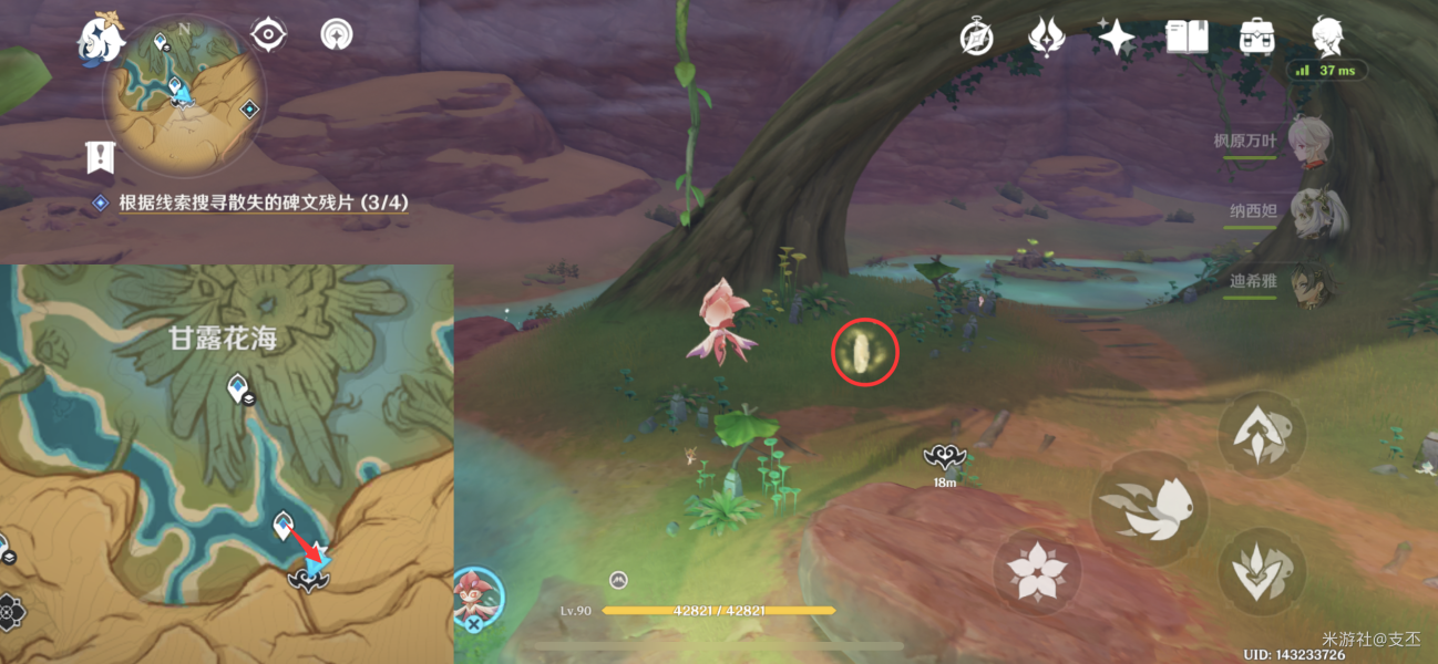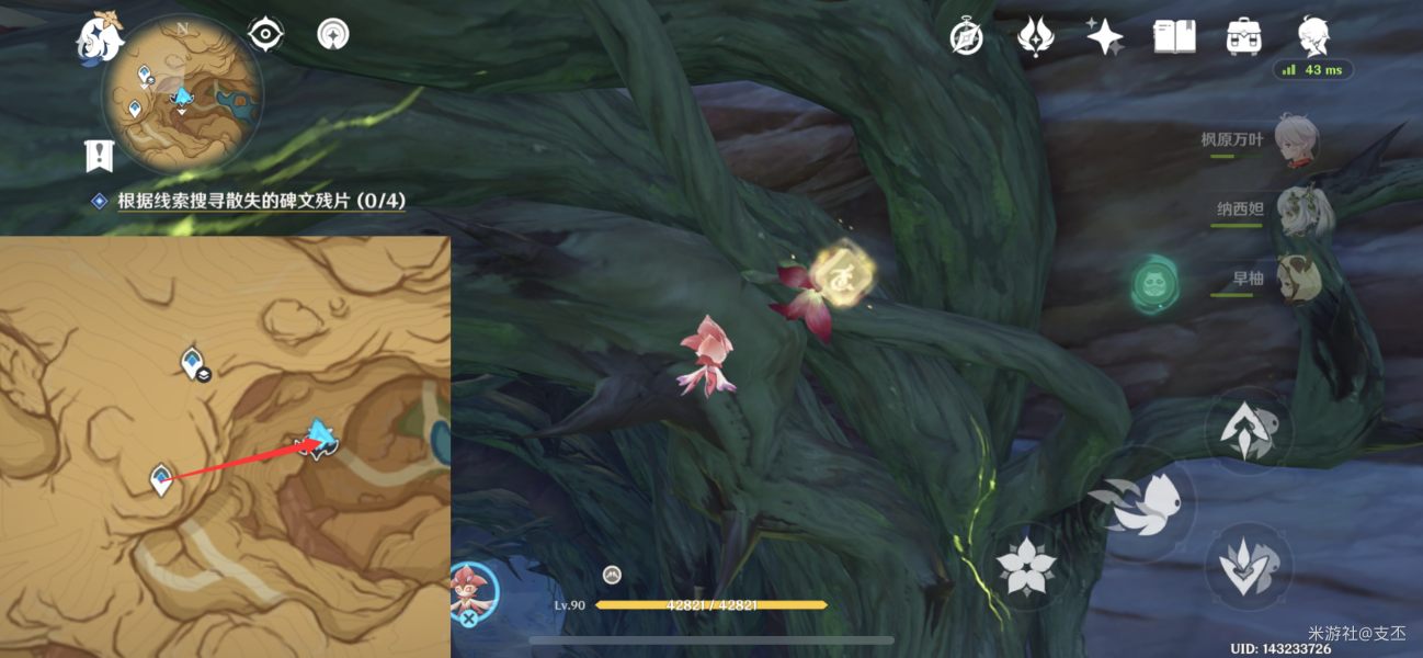 2、之后玩家需要借助四叶印来到山顶位置,到达之后在树枝上即可获得残片;