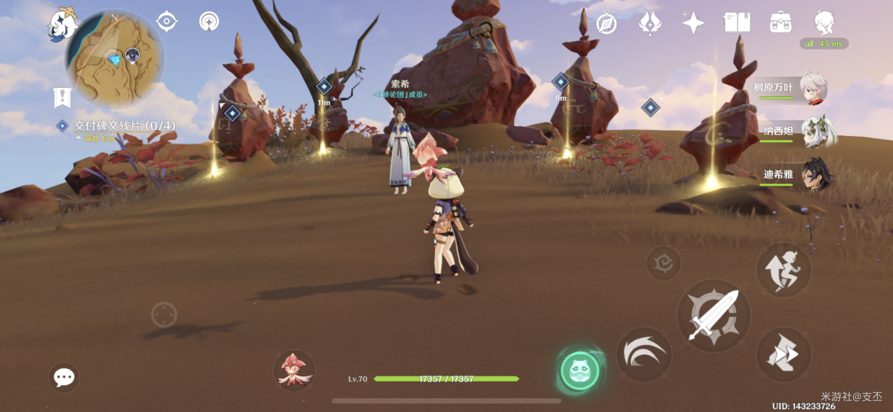 1、首先先找到索希并与之对话,之后将四个碑文残片归位;