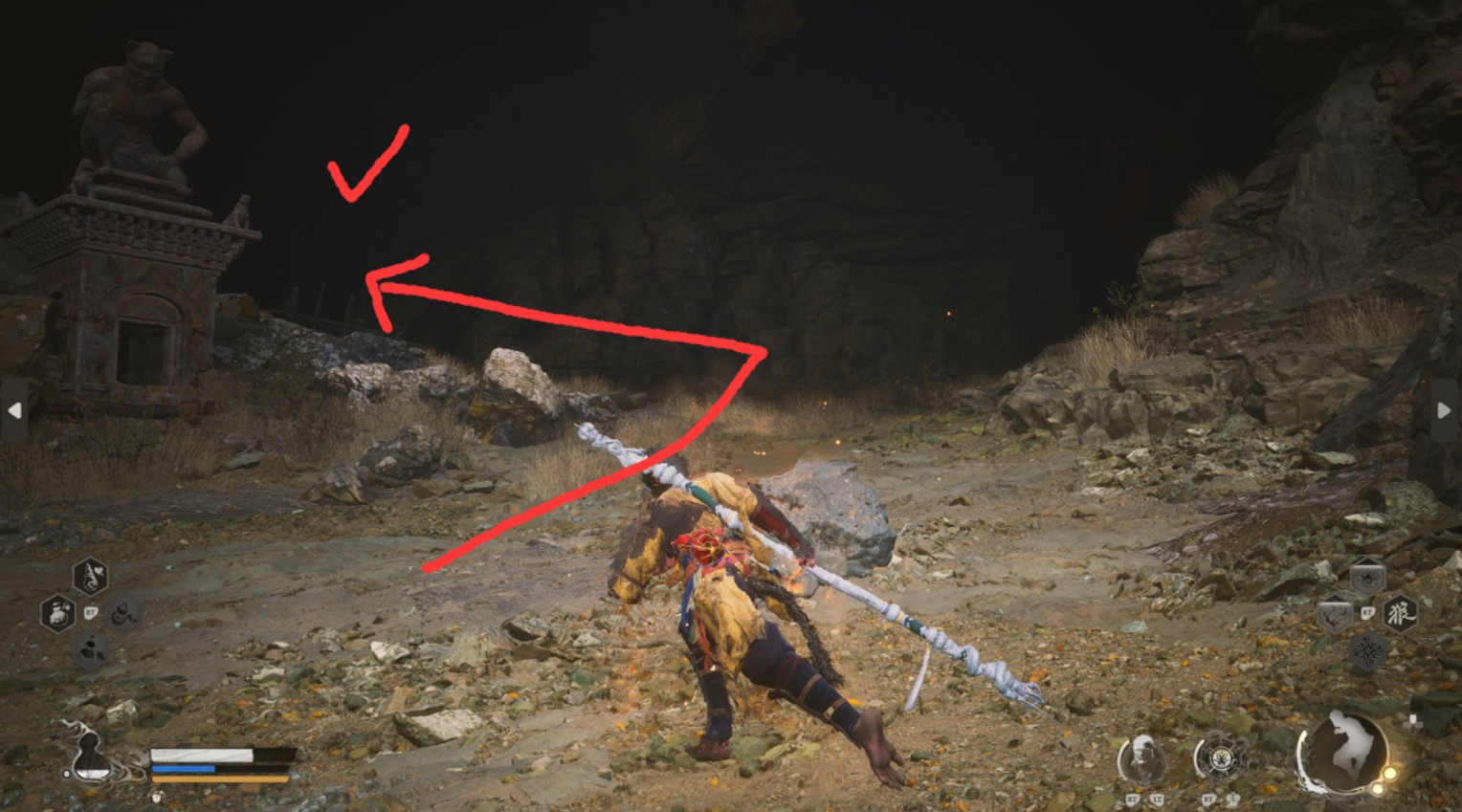 枕石坪传送点左侧可以发现石头,互动就可以复活石敢当,打败就可以解锁了;