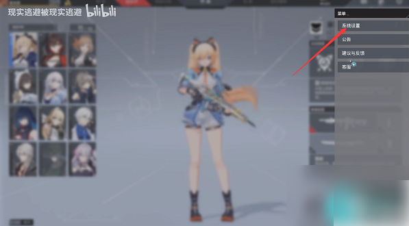 1、玩家进入游戏打开角色界面,在界面右上角会有菜单,在菜单中找到【系统设置】;