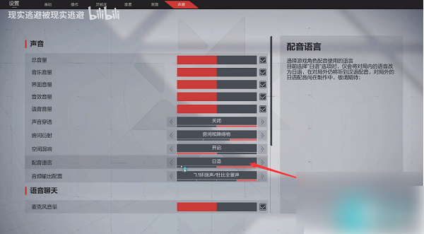 2、进入设置界面之后,点击上面的【声音】,将配音语言切换为日语即可;