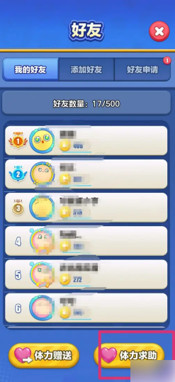进入好友界面,点击页面上的的“体力求助”。
