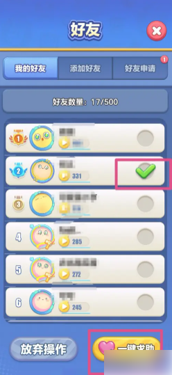 选择好友,点击“一键求助”即可。