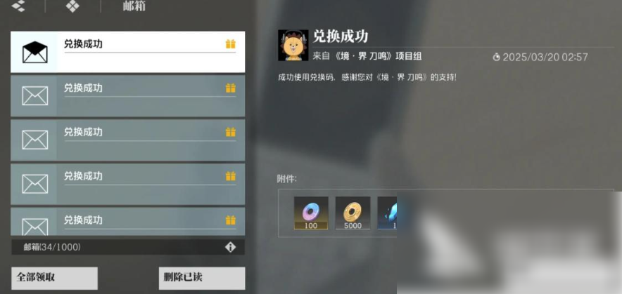 然后将获得的兑换码粘贴到右侧的窗口中,再点确认兑换,奖励就会发放到邮箱中,兑换码只支持逐个输入,不支持批量。而且通常都是有时间限制的,获取了之后要尽快用掉避免过期了。