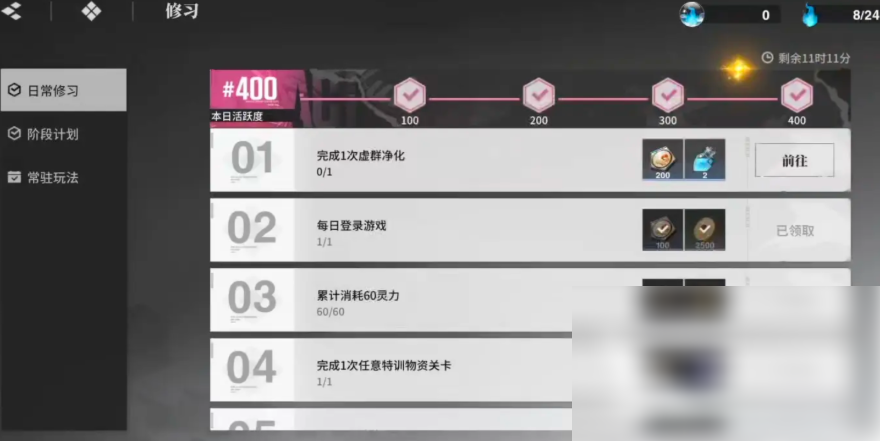 第三个途径是玩家完成每日的常规修习任务,以及每周的常规任务,通过挑战一次主线章节,亦或是升级角色,达成任务目标,即可直接领取到奖励。