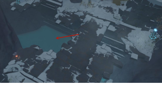 第二步:清理洞口,携带火焰微粒,敲开冻结的冰,开启机关,获得宝箱。